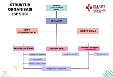 Sistem Manajemen Mutu LSP SMART HEALTH CERTIFICATION INSTITUTE (SHCI) dituangkan dalam manual mutu dan prosedur yang didokumentasikan, dipahami dan dilaksanakan oleh semua personel secara profesional